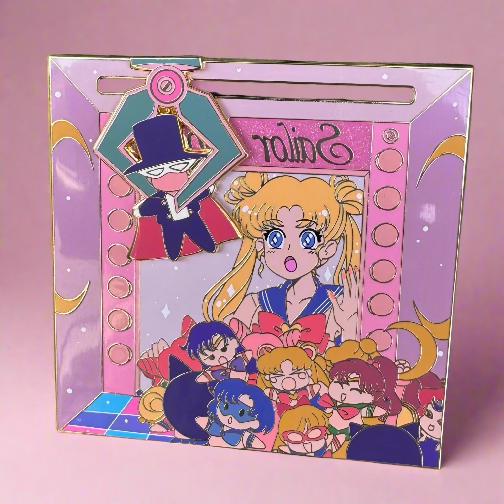Description: 3.5”, screen printing, a sliding top pin, and glitter details LE50