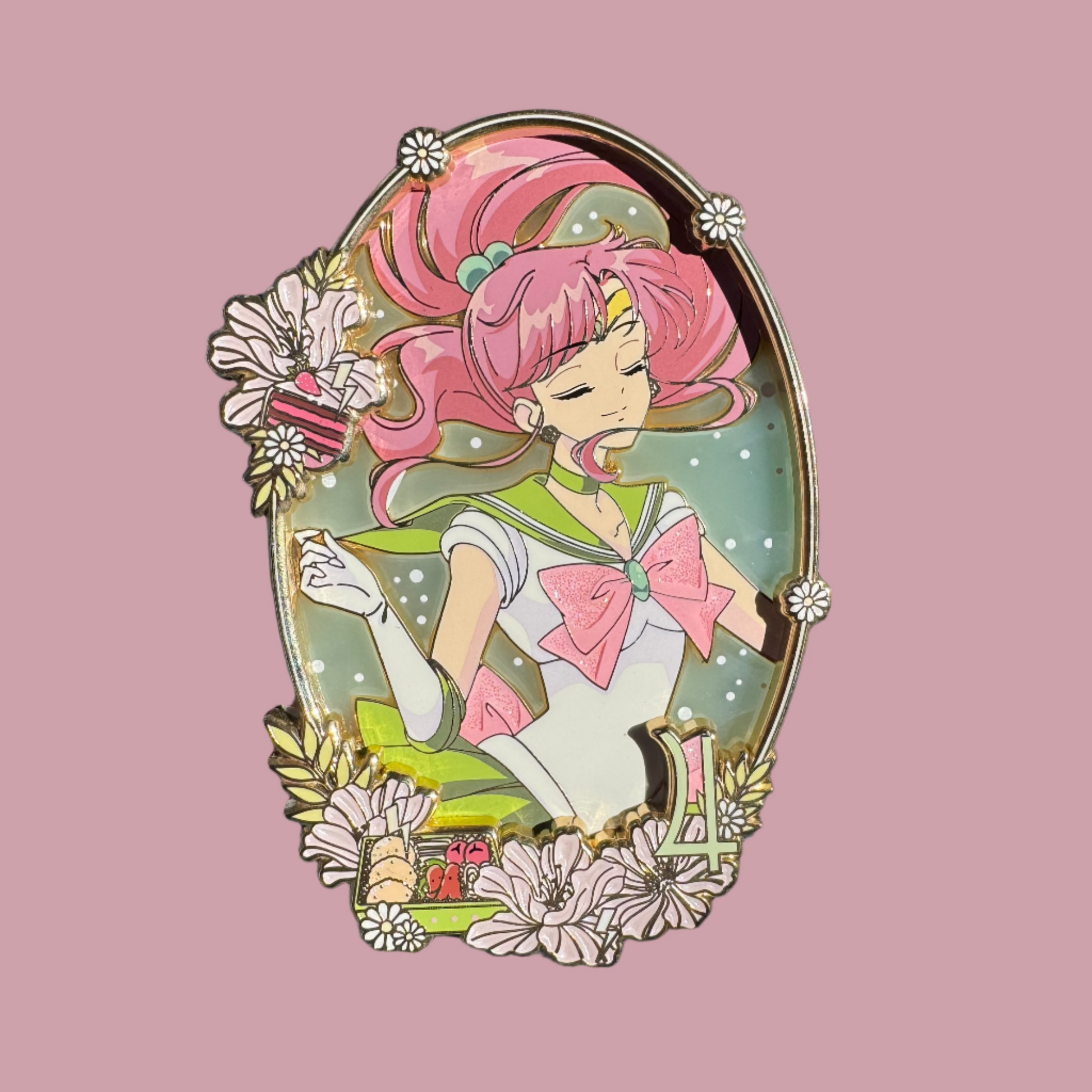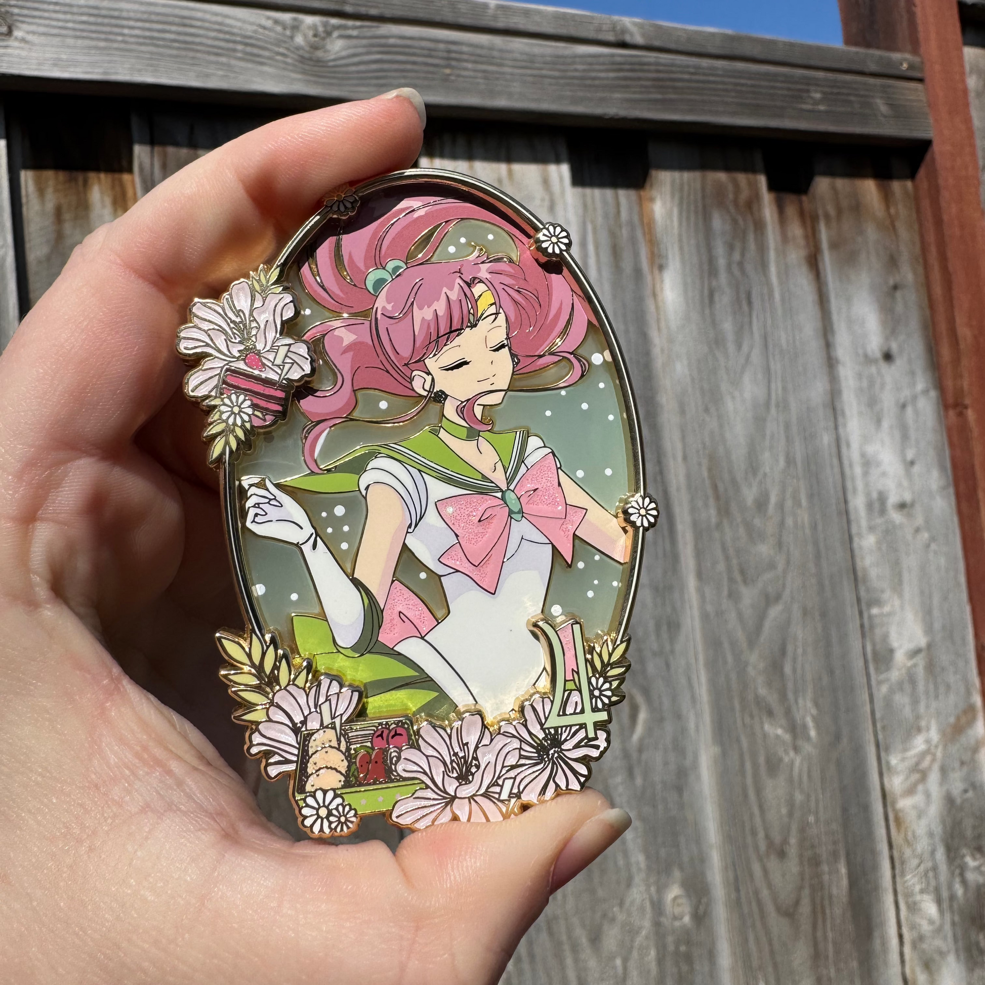 Details: 3.5” tall, LE 40, gold plating, pin-on-pin, screen print, stained glass, and glitter details.