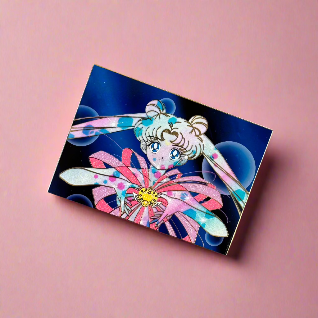Details: 3.5 tall, LE 45, gold plating, gradient pearl body, glitter ribbons, UV printed back ground.